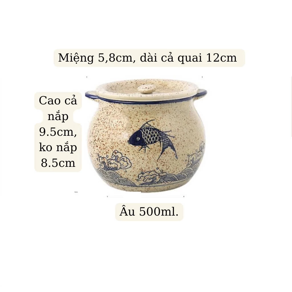 Âu đựng mỡ Tiệm Gốm Nắng kèm thìa, hũ đựng gia vị kèm thìa sứ