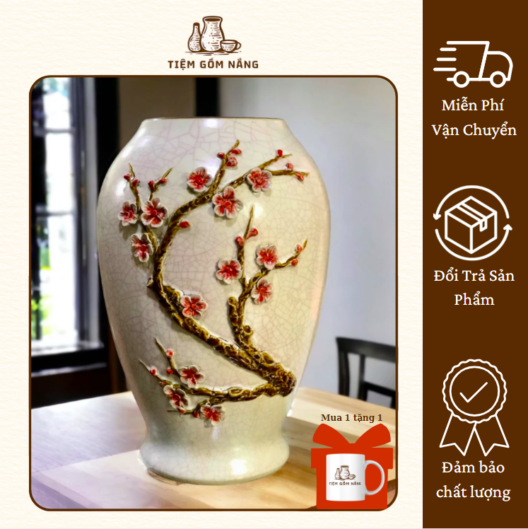 Sản phẩm được tạo ra hoàn toàn bằng tay của những nghệ nhân tài hoa, qua quá trình nung ở nhiệt độ cao 1300 độ C, đảm bảo độ bền và an toàn sức khỏe khi sử dụng. Đây không chỉ là sự kết hợp giữa chất liệu men rạn quý hiếm của